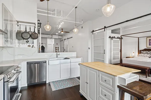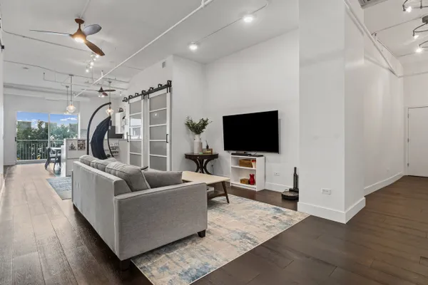 'Experience sophisticated loft living in the heart of downtown Evanston! This completely renovated luxury loft showcases soaring 11 foot ceilings, wide wood-plank flooring, and an open, sun-filled layout that exudes modern elegance. The Chef's kitchen features sleek new European cabinetry, quartz countertops and backsplash, and a spacious design perfect for entertaining. Gorgeous 9-foot glass European barn doors add style and light throughout, while deep pantry closets with matching barn doors provide exceptional storage. All closets are either walk-in or extra deep and outfitted with custom closet systems for ultimate organization. Two generous bedrooms and two spa-inspired bathrooms offer comfort and refinement, complemented by an in-unit laundry room. Enjoy outstanding building amenities including a door man, rooftop indoor pool, exercise room, party room, and lush garden terraces with grilling areas and city views. Two heated garage parking spaces complete this one-of-a-kind residence--steps from Metra, Shopping, Dining, and Lake Front!